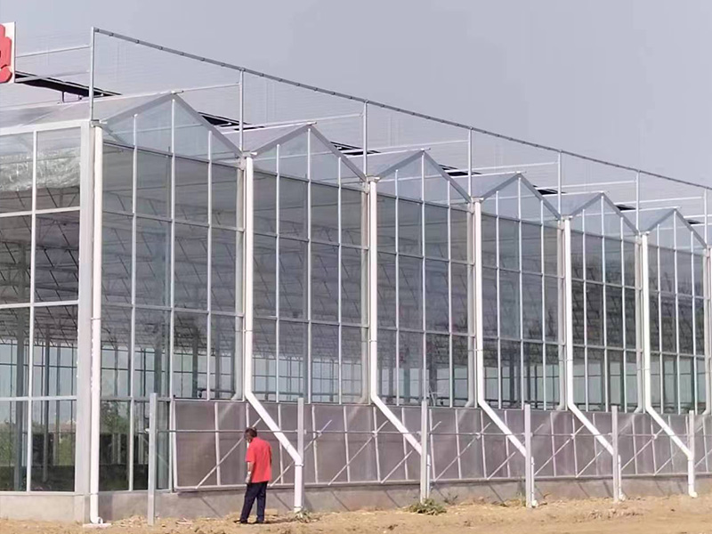 1、該類溫室采用熱鍍鋅鋼制骨架,覆蓋材料為國標5mm厚浮法玻璃,其透光率>90%。